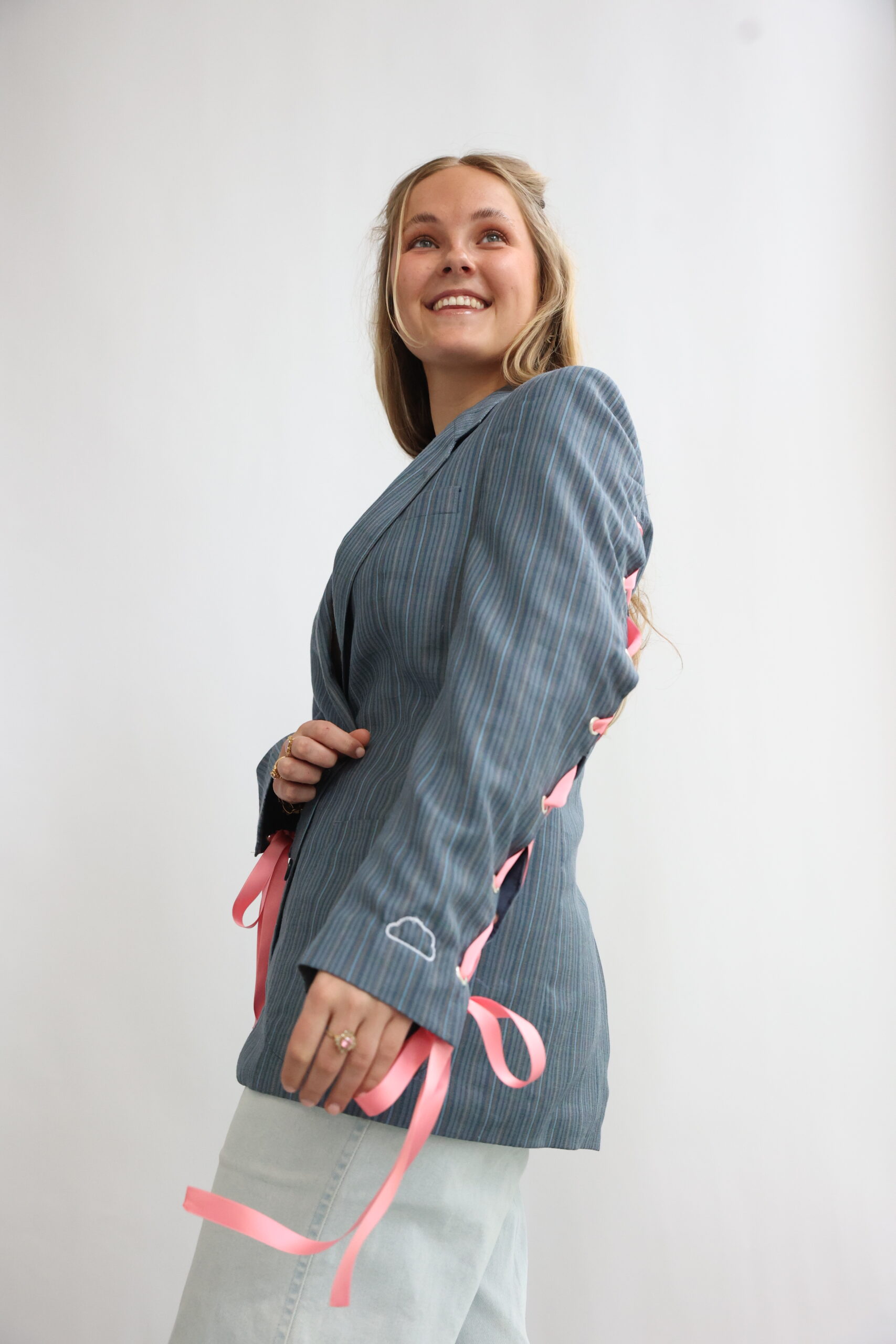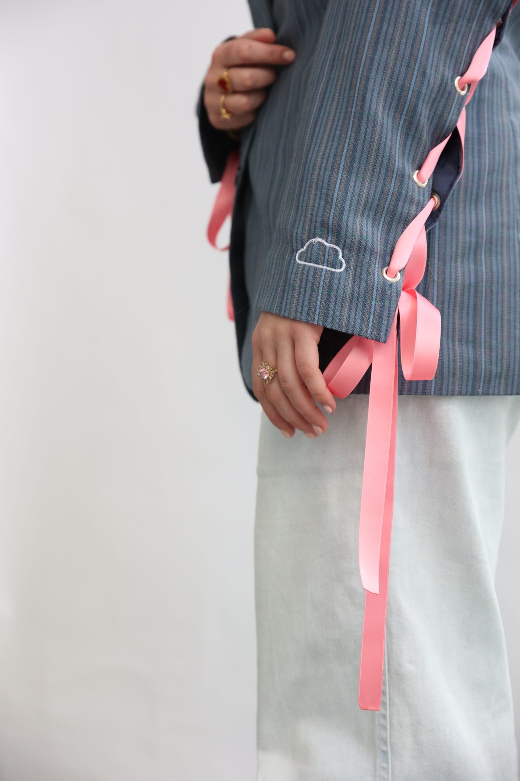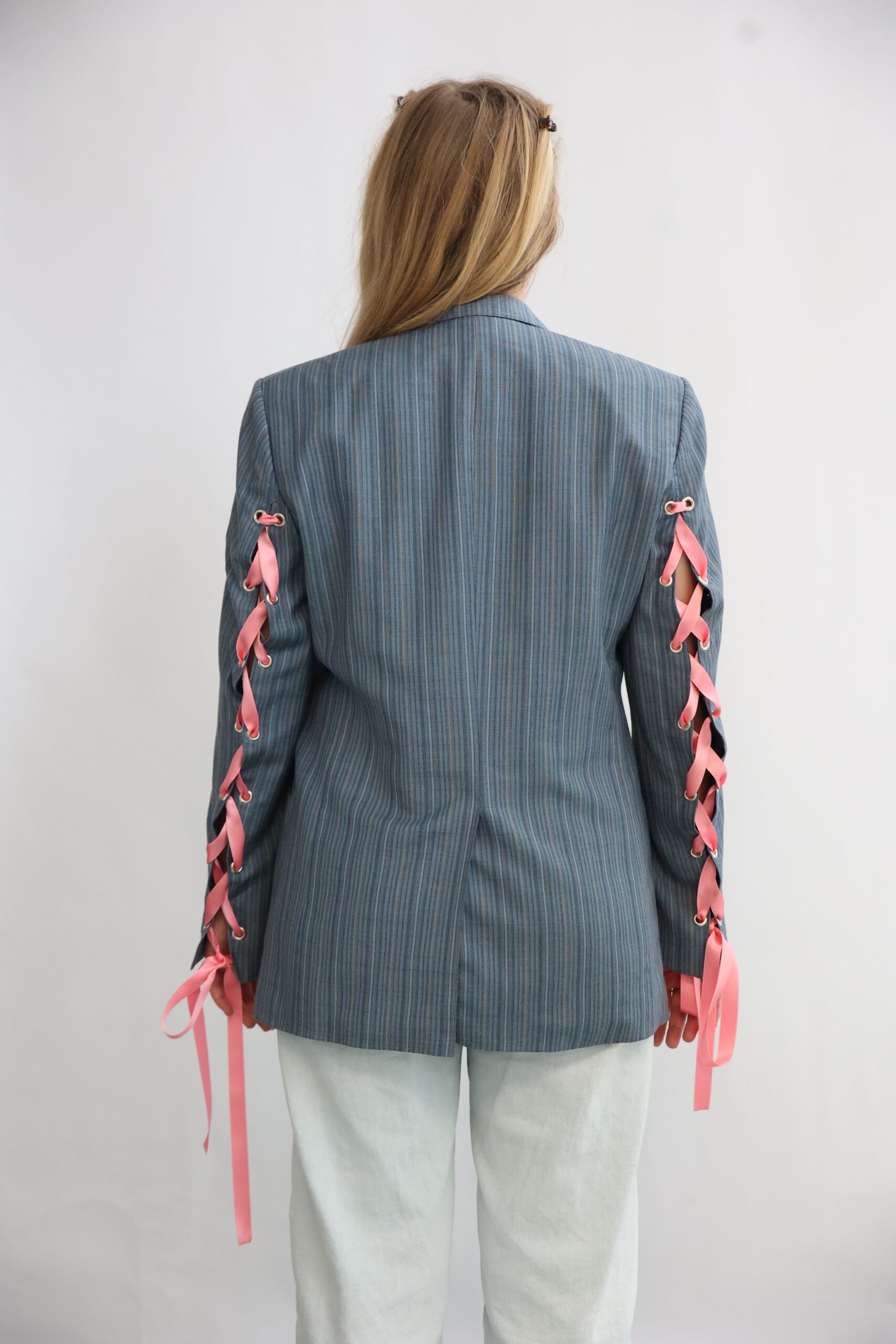 Striped Blue Blazer Pink Ribbon